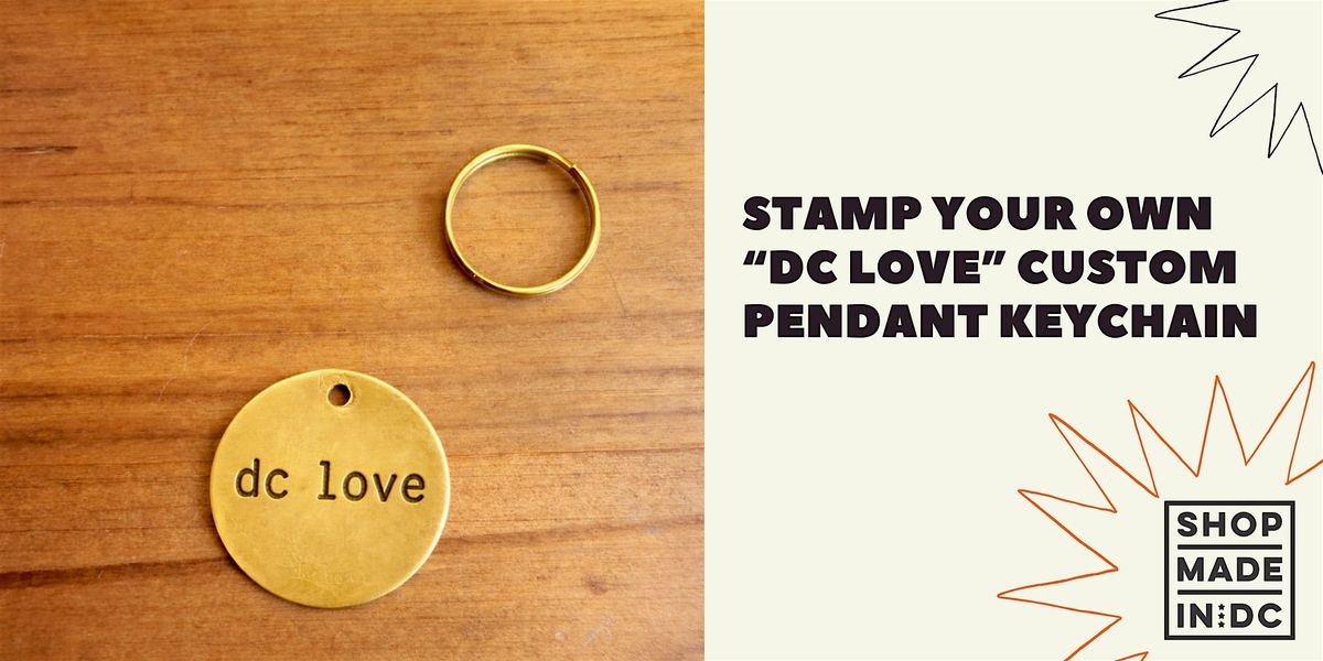 Bring a little DC love with you wherever you go. Custom stamp your own pendant keychain to share your local pride. Custom stamp a metal pendant keychain with "dc love", "local", or anything special to you.