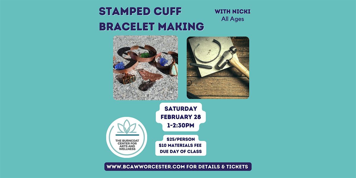 Create a bracelet that’s truly your own in this hands-on metal stamping class! You’ll use letter and design stamps to personalize a brass or copper cuff with words, patterns, or symbols that matter to you. Whether it’s a name, mantra, date, or just something playful, you’ll leave with a one-of-a-kind piece you can wear or gift.