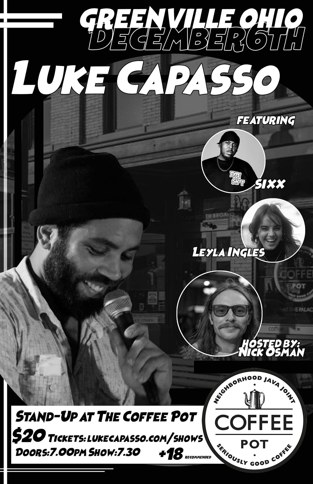 Luke Capasso pres: Standup at the Coffee Pot featuring top Dayton acts; Sixx, Leyla Ingalls (K*ll Tony), and hosted by Nick Osman