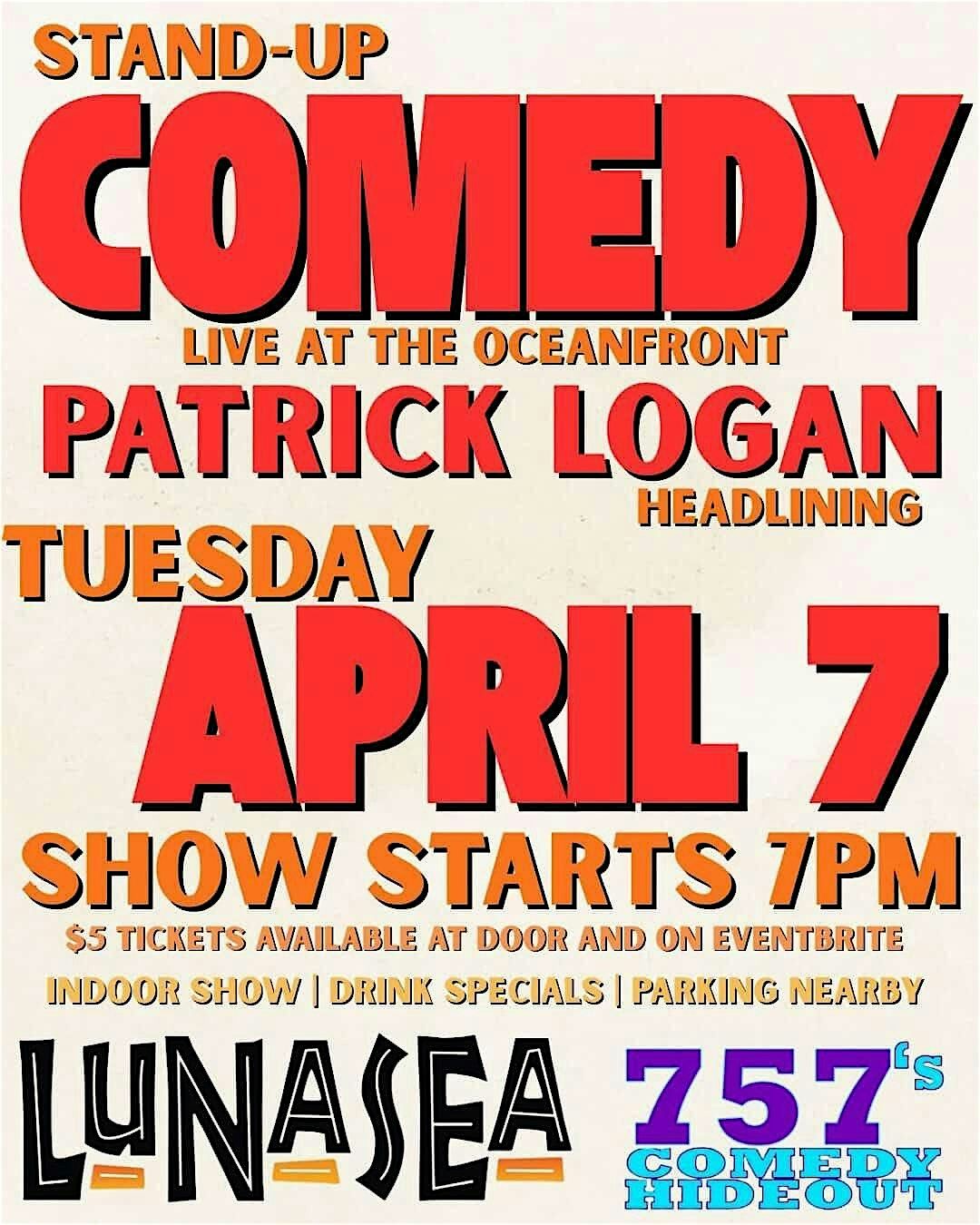 Comedy starts at 7pm with local comedians, headlined by Patrick Logan