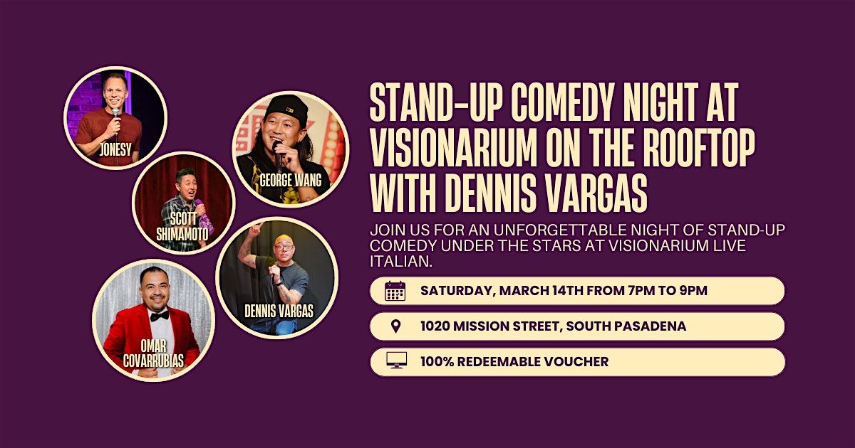 Join us Saturday, March 14th from 7PM to 9PM for an unforgettable night of stand-up comedy under the stars at Visionarium Live Italian.