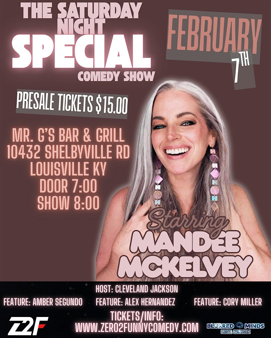 The Saturday Night Special Comedy Show is bringing a can’t-miss night of laughs to Mr. G’s Bar & Grill in Louisville! Headlining the evening is the hilarious Mandee McKelvey, delivering a high-energy set that makes this the perfect Saturday night plan.