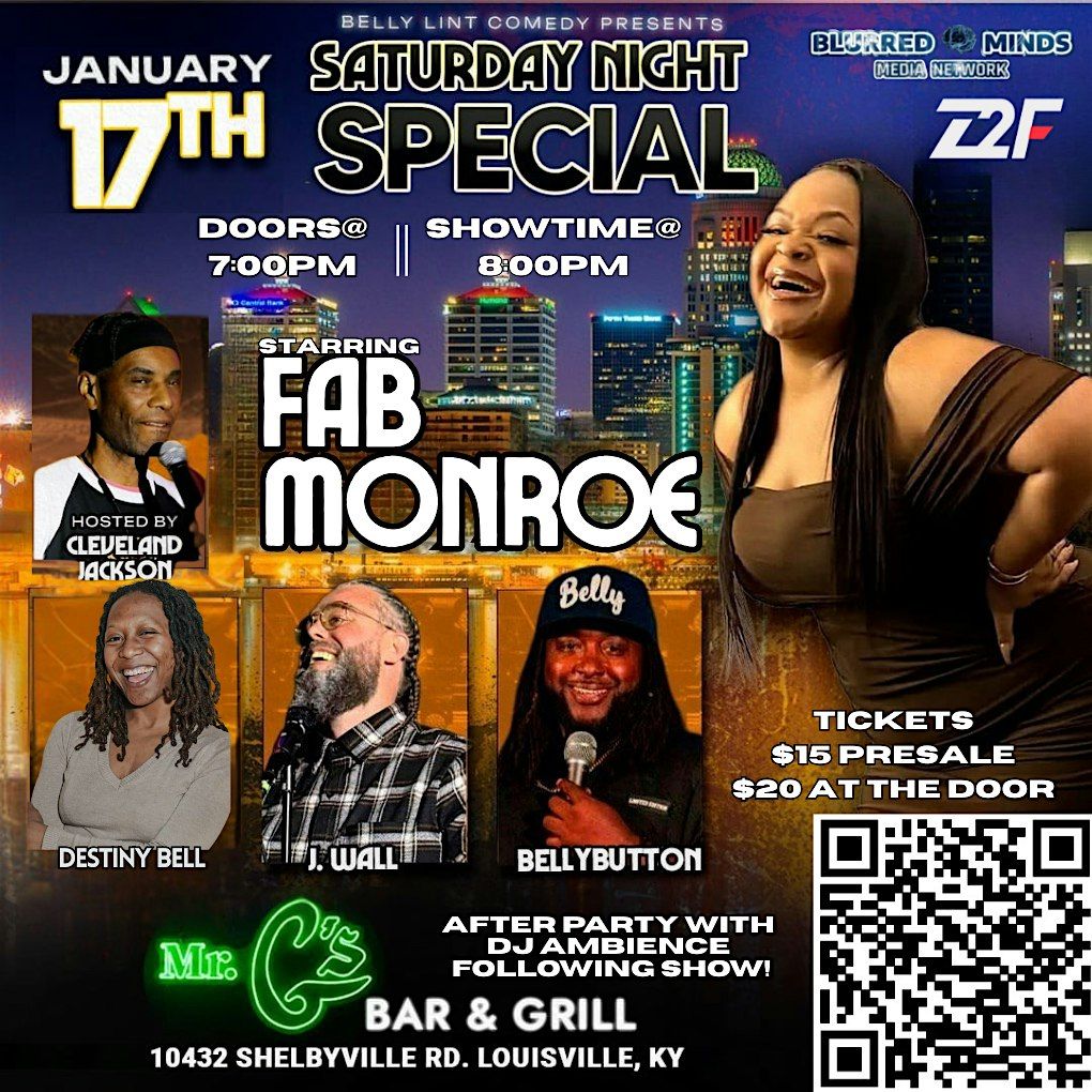 Belly Lint Comedy presents a night of nonstop laughs at Mr. Gβs Bar & Grill featuring the hilarious Fab Monroe headlining the stage!