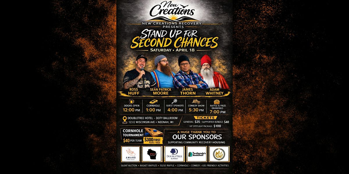 Join us in person for a fun and inspiring event where laughter meets purpose! Stand Up for Second Chances is all about coming together to support those looking for a fresh start. Expect good vibes, great company, and plenty of reasons to smile. Don't miss out on this awesome chance to make a difference while having a blast!