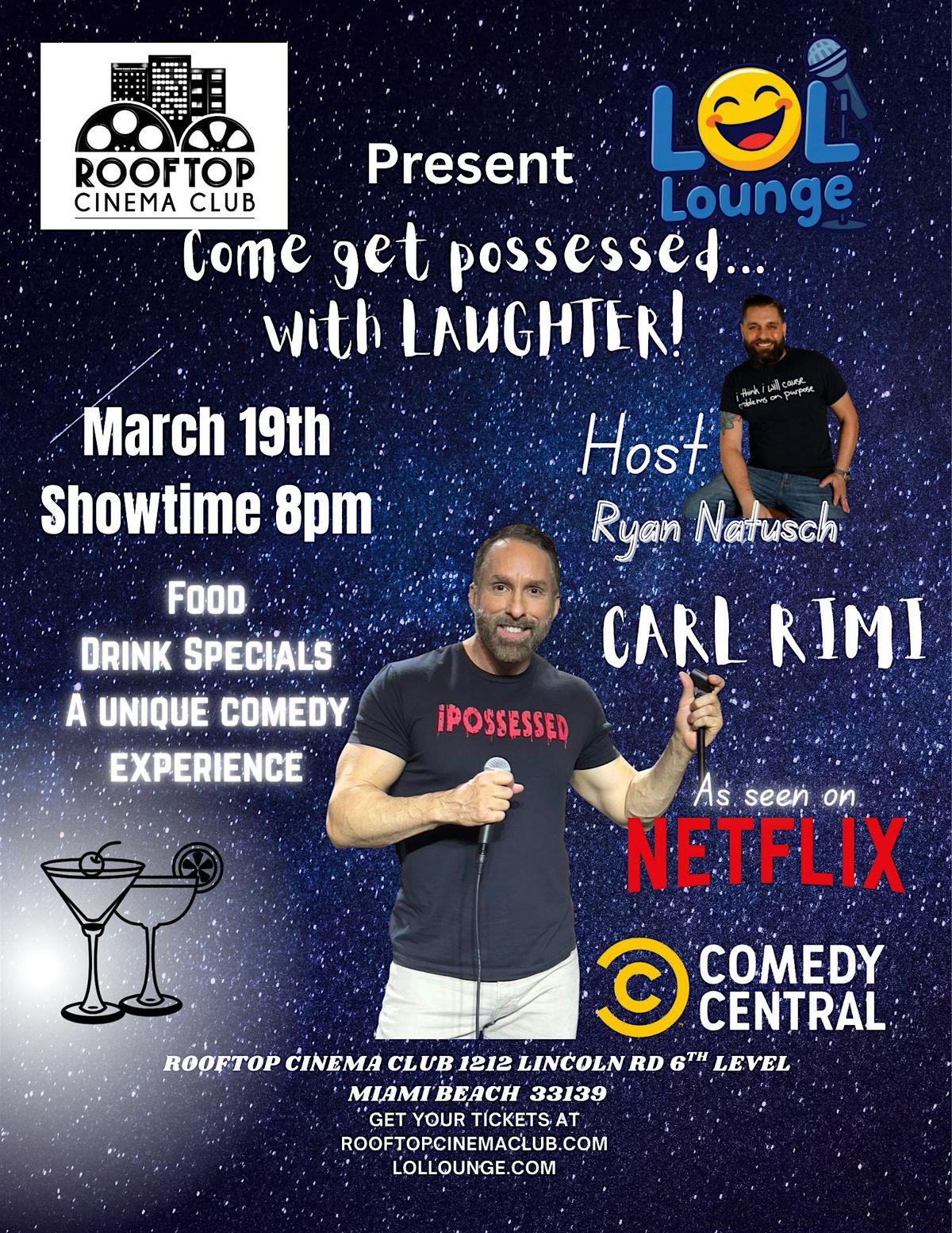 Get ready for a night full of laughs with Carl Rimi live in person! Join us on the rooftop for an unforgettable comedy show under the stars. Whether you're a comedy fan or just looking for a good time, this stand-up event is the place to be. Don't miss out on some seriously funny moments and a relaxed vibe. Bring your friends and enjoy a hilarious evening with great views!