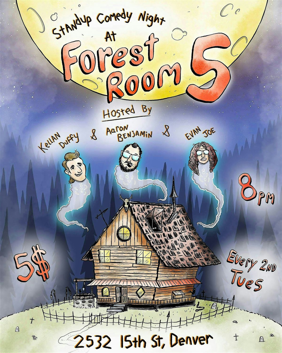 Come join us for a night of laughter at Forest Room 5! Our talented comedians will have you rolling in your seats with their hilarious jokes and witty humor. Grab your friends and enjoy a fun evening filled with laughter and good vibes. Don't miss out on this unforgettable night of comedy!