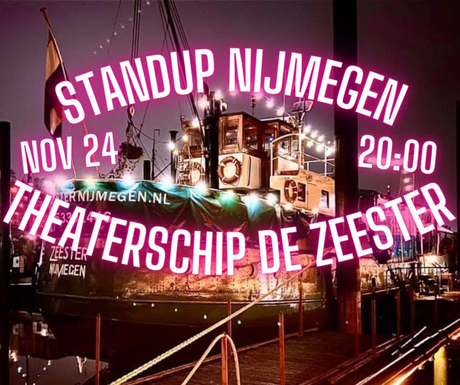 We invite you to spend a wonderful evening in a theater de Zeester at our monthly comedy show! Best comedians in the Netherlands bring their hilarious acts in Nijmegen, which you can enjoy together with a breathtaking view over the Waal!
