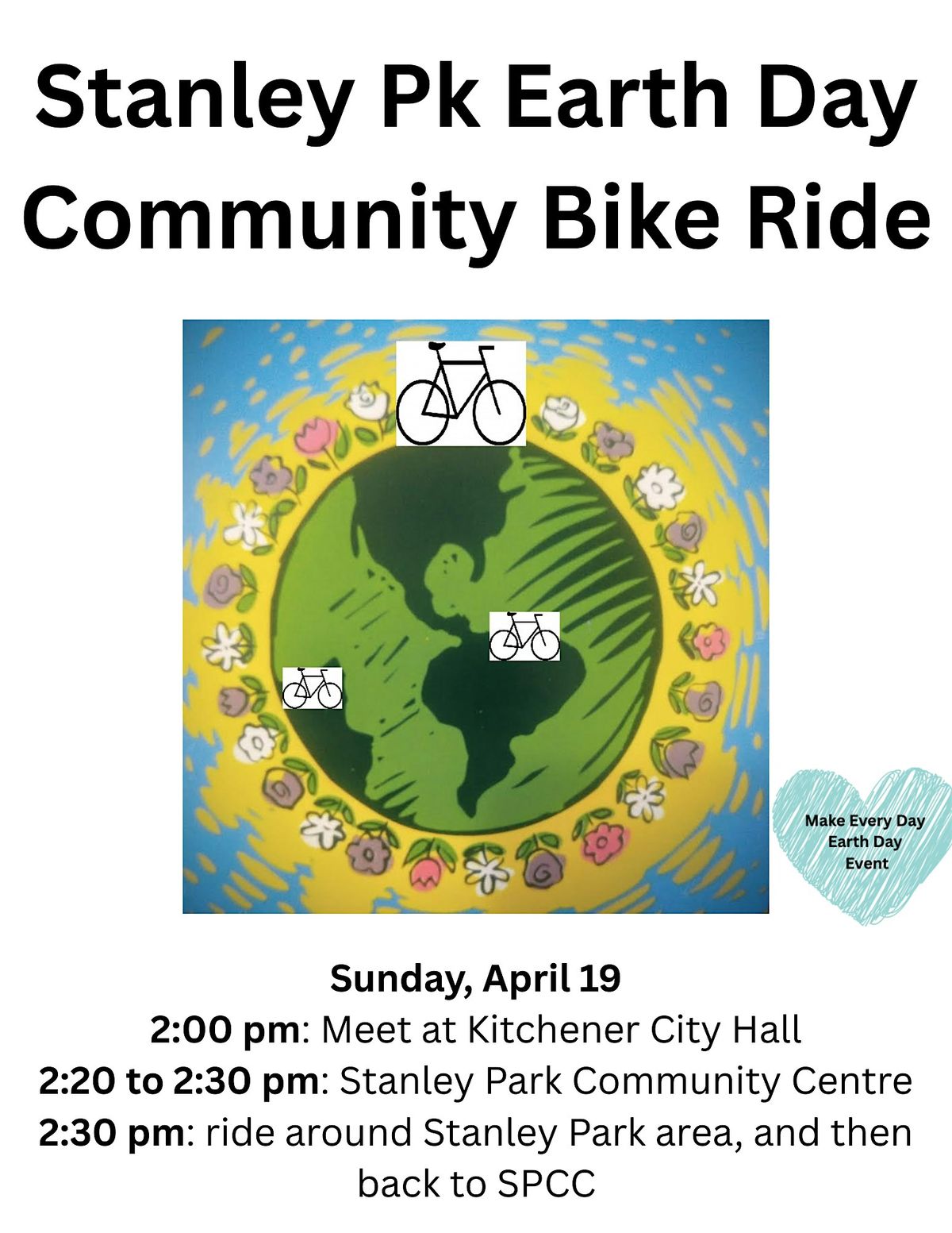 2:10 pm bike to Stanley Park Community Centre (SPCC), 505 Franklin St N and visit SPCC's Earth Day event (you can also join the ride from SPCC if that's easier for you!)