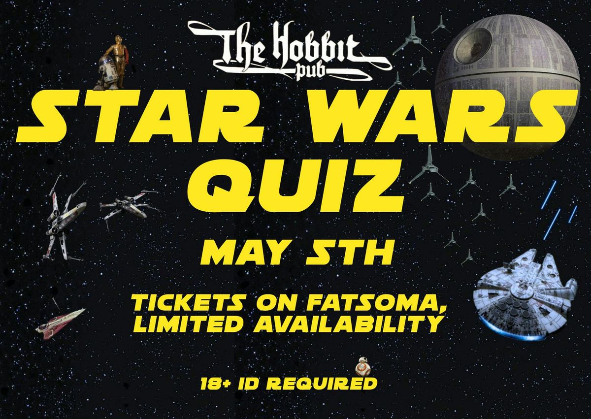 On May 5th the rebels shall descend upon the hobbit Pub Southampton and the chosen one shall be discovered. Teams may battle in up to groups of 8, with the battle commencing at 7:30pm. entrance to this freedom fight against darth quiz-master costs £2 per person on fatsoma with limited capacity. during the battle rebels will fight for a variety of merits such as crisps, shots, bombs, cocktails and a secret prize for the chosen one...