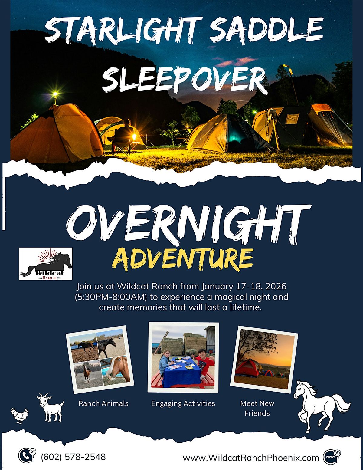 Get ready for an enchanting evening beneath the stars at our Starlight Saddle Sleepover! Join us at the ranch for a memorable overnight adventure filled with laughter, new friendships, and cozy campfire moments. From sharing stories and enjoying tasty snacks to soaking in the peaceful nighttime ranch atmosphere, this special event offers the perfect mix of adventure and relaxationβcreating memories your child will cherish.