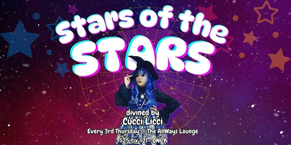 I can see it in the stars: this show is guaranteed to blow your mind. STARS OF THE STARS is a monthly cabaret and variety show that celebrates each zodiac sign with a stacked cast of performers of that sign. This show is a perfect way to celebrate your birthday, or to just come out and be entertained by legendary artists. Drag, burlesque, even comedy and live music; we got it all, and we'll show you the talent that the stars have bestowed upon us.