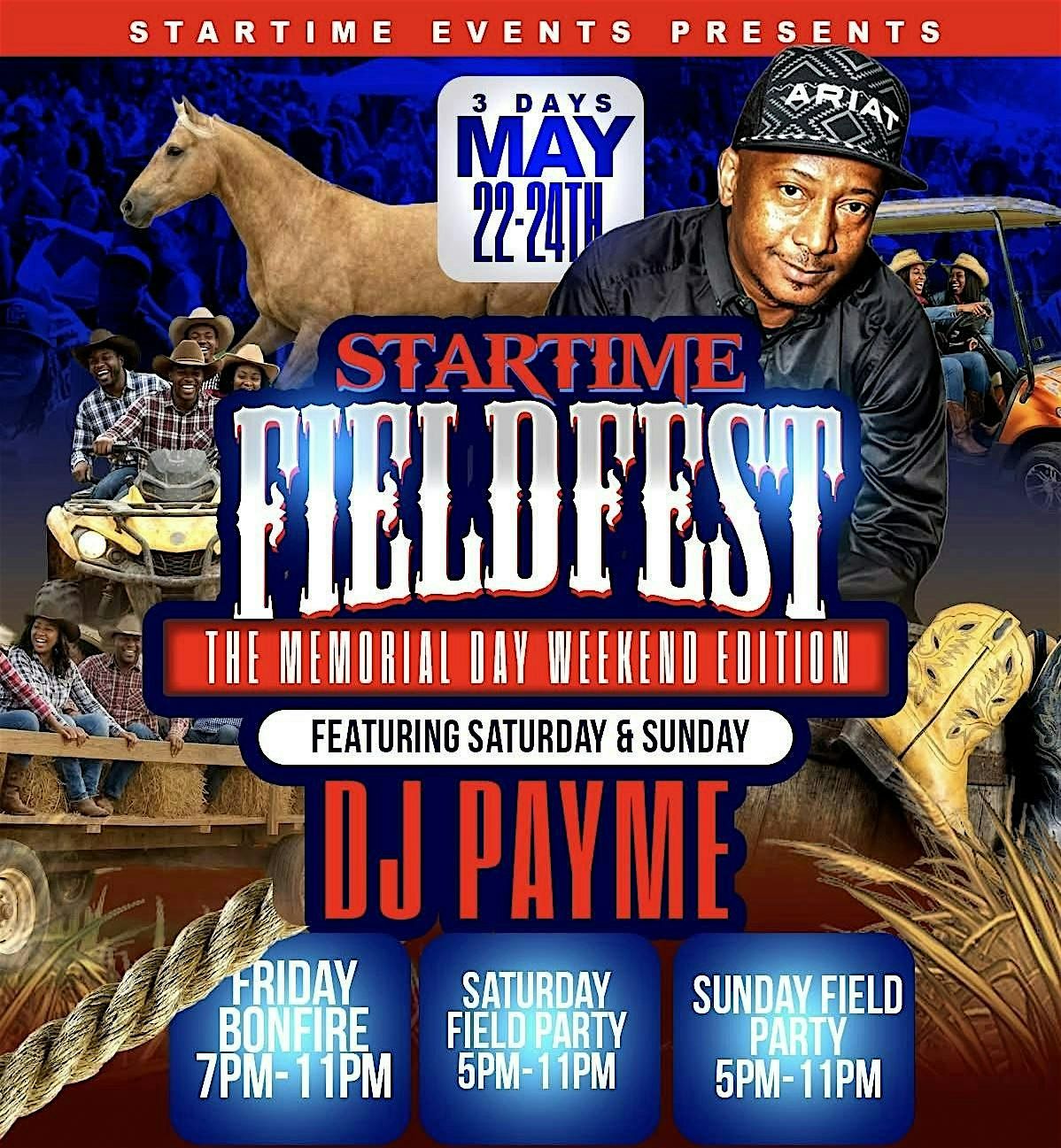 Get ready for the ultimate DJ Payme in-person experience at StarTime FieldFest 2 Join us for 3 days packed with fun, live music, and great vibes all under the open sky. Bring your friends, enjoy awesome performances, and make memories that’ll last forever. Don’t miss out on this epic celebration where the stars come out to play—see you at FieldFest 2