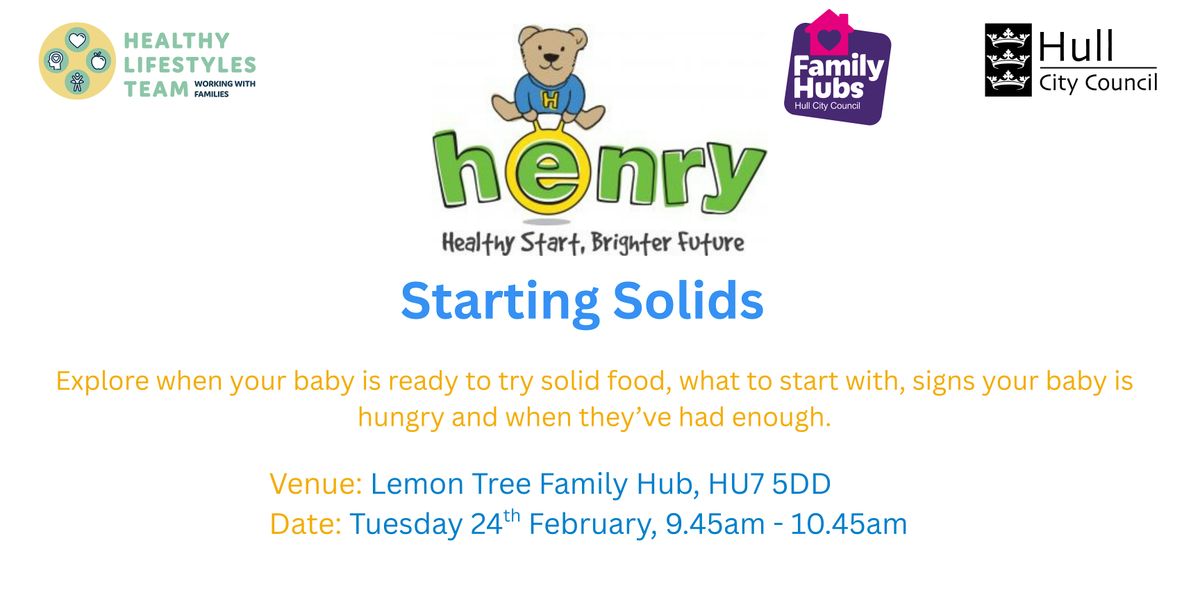 A free workshop exploring when your baby is ready to try solid food, what to start with, sign your baby is hungry and when they've had enough.