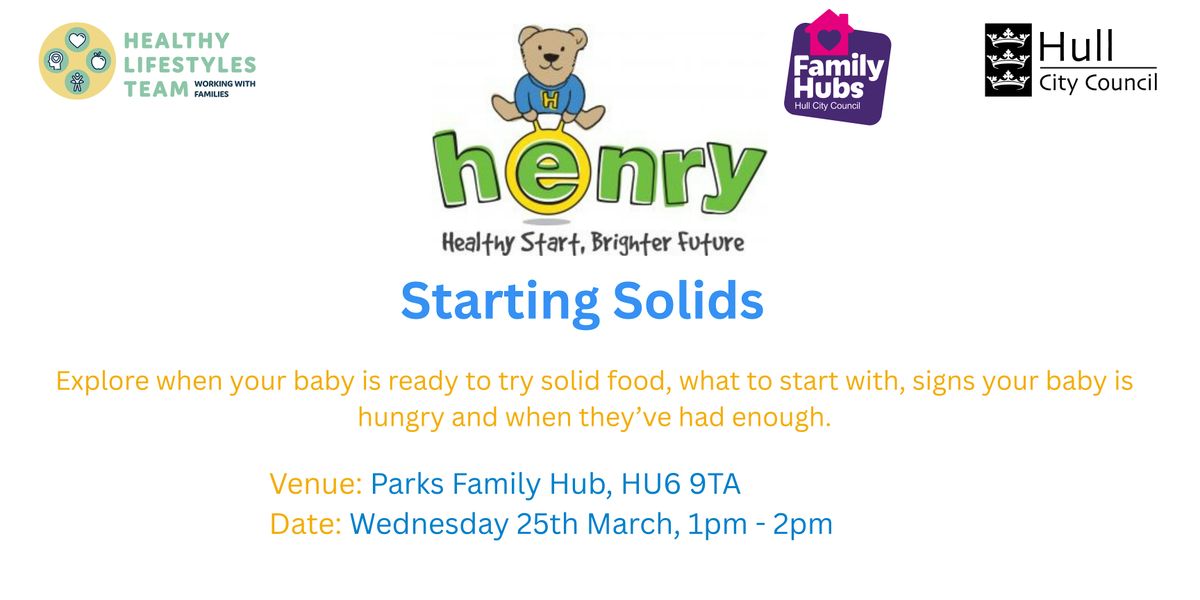 A free workshop exploring when your baby is ready to try solid food, what to start with, sign your baby is hungry and when they've had enough.
