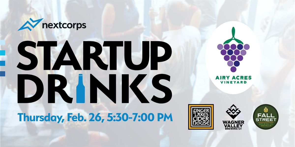 What makes this one extra special? We’re showcasing some of the Finger Lakes’ best beverages, with a special focus on some of our favorite vendors from Seneca County this month. Enjoy a wine tasting from Airy Acres Vineyard, alongside a curated selection of local beer, cider, kombucha, and NA options. Come sip, sample, and discover something new while catching up with the startup community.