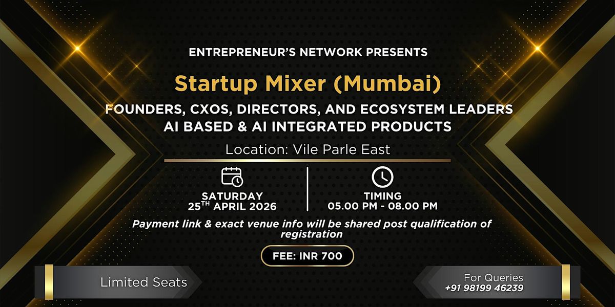 The AI/ML Startup Mixer, organised by Entrepreneurs Network, is a curated networking meetup designed exclusively for entrepreneurs, innovators, and investors shaping the AI and Machine Learning ecosystem.