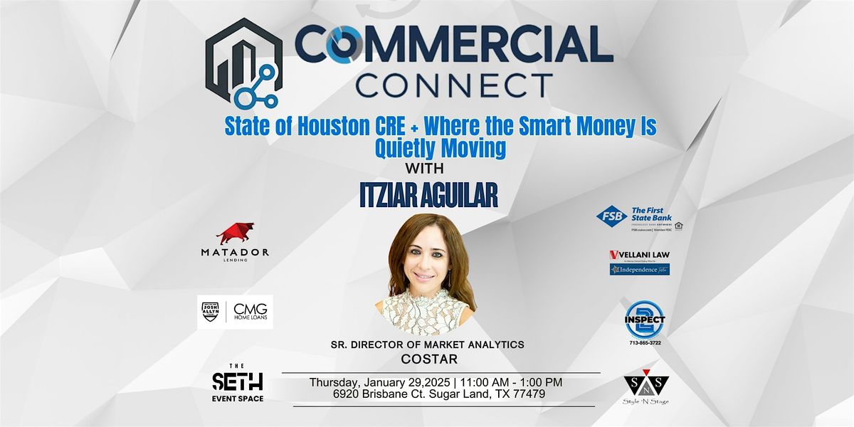 Kick off 2026 with the first Commercial Connect event of the year on January 29th from 11:00 AM – 1:00 PM at THE SETH (6920 Brisbane Ct, Sugar Land, TX).