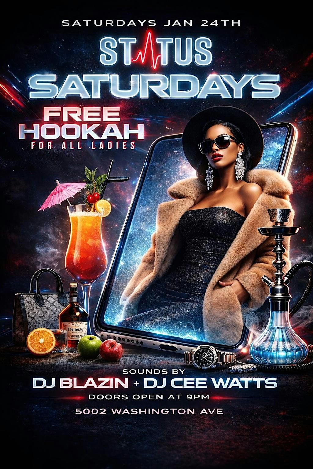 Welcome to Ladies Night at Status Saturdays! 5002 Washington Ave Free Hookah for the Ladies!