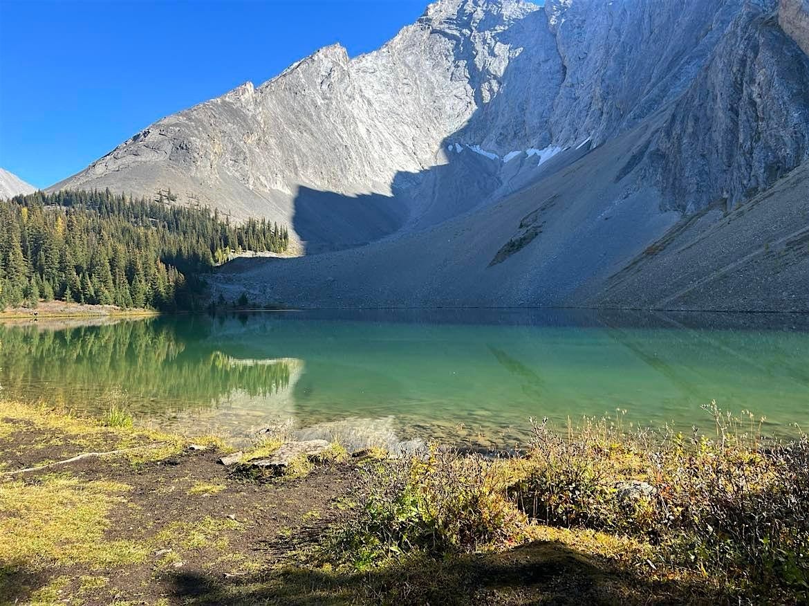Our adventure takes us to a forested trail that leads to a beautiful alpine lake. The whole journey is stunning with some amazing views along the way. You will feel refreshed and empowered after this hike. Total distance is just under 12km round trip elevation gain of 449 m . Stay and Play guided hikes pair a scenic, small-group trek in Alberta’s Rockies with relaxed hangout time by the lake, giving you space to unwind, connect, and truly soak in the mountain experience. You might enjoy swimming or wading, relaxing in the sun, napping, creating art, taking photos, or simply lingering with snacks and good conversation by the water’s edge.