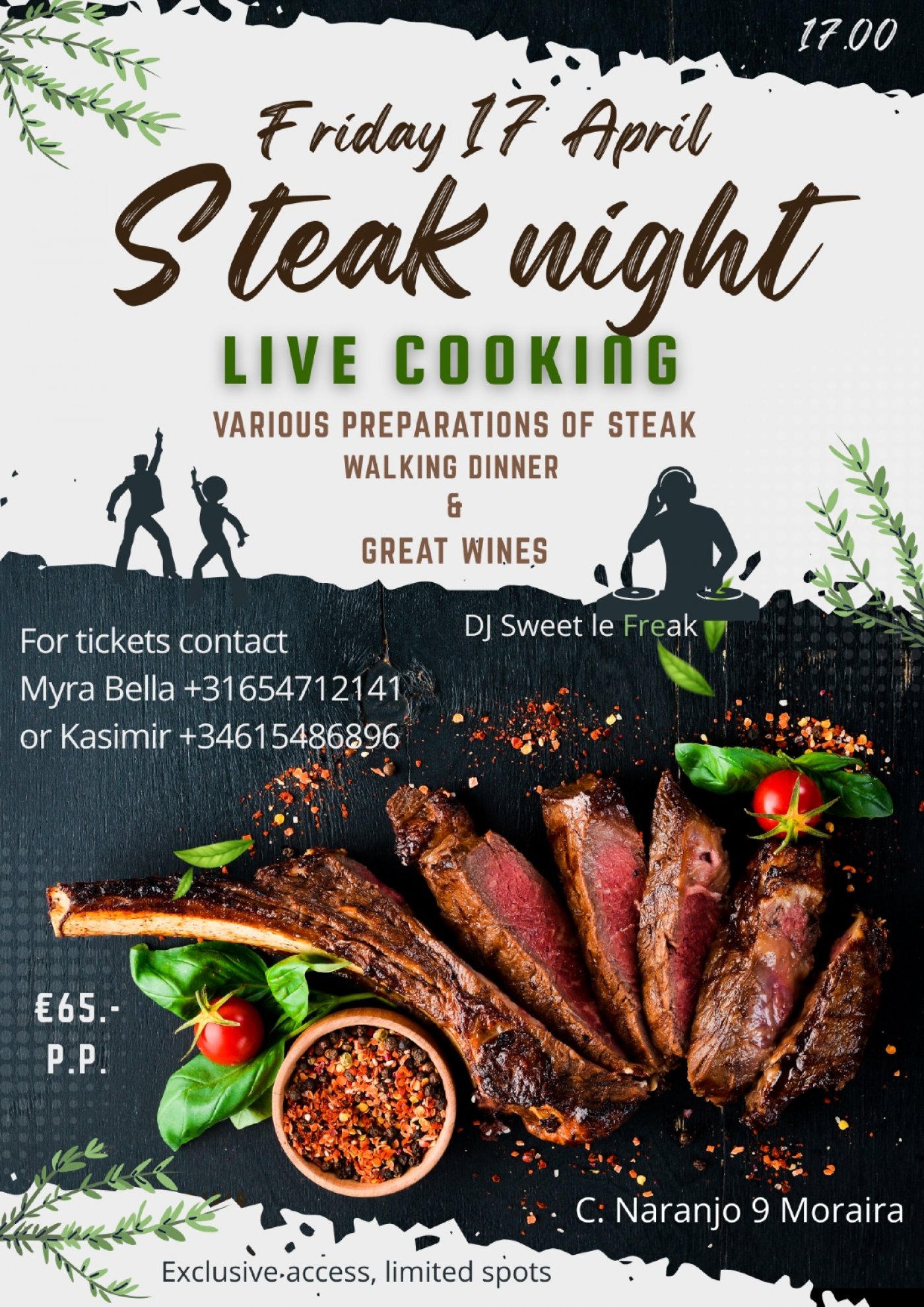 During this Steak Night, various premium cuts are prepared live on plancha and barbecue in an elegant walking diner format. No assigned seating—enjoy freedom, movement, and connection—accompanied by soothing music and a relaxed, effortless atmosphere.