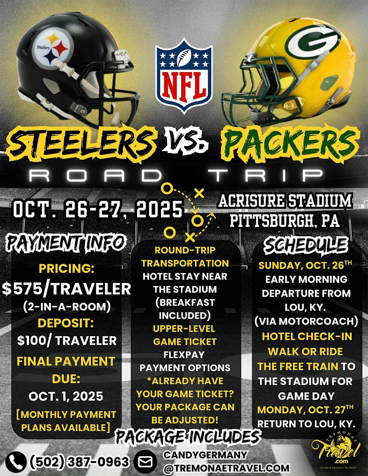 🏈 Steelers vs. Packers 2025 Road Trip — Your VIP Game Day Experience Awaits!