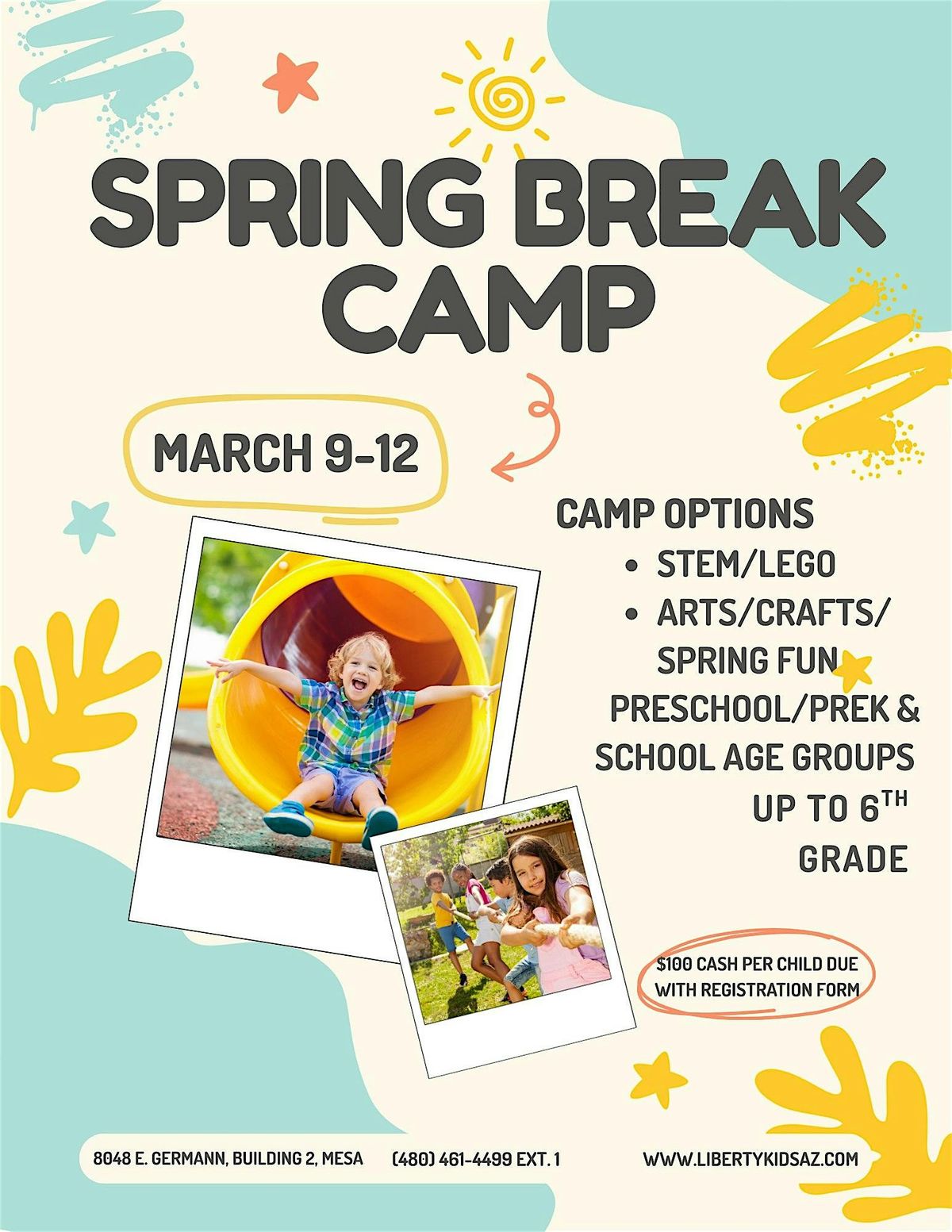 Camp is $100 cash and required before signing your child up! Questions? Call us (480) 461-4499 ext. 1 or email [email protected]