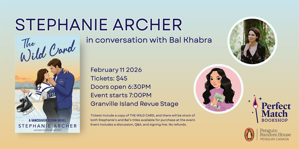 Join us to celebrate the release of The Wild Card with Stephanie Archer and Bal Khabra. This event includes a discussion, Q&A, and signing line. All tickets include a copy of THE WILD CARD and a ticket must be purchased to attend. No Refunds.