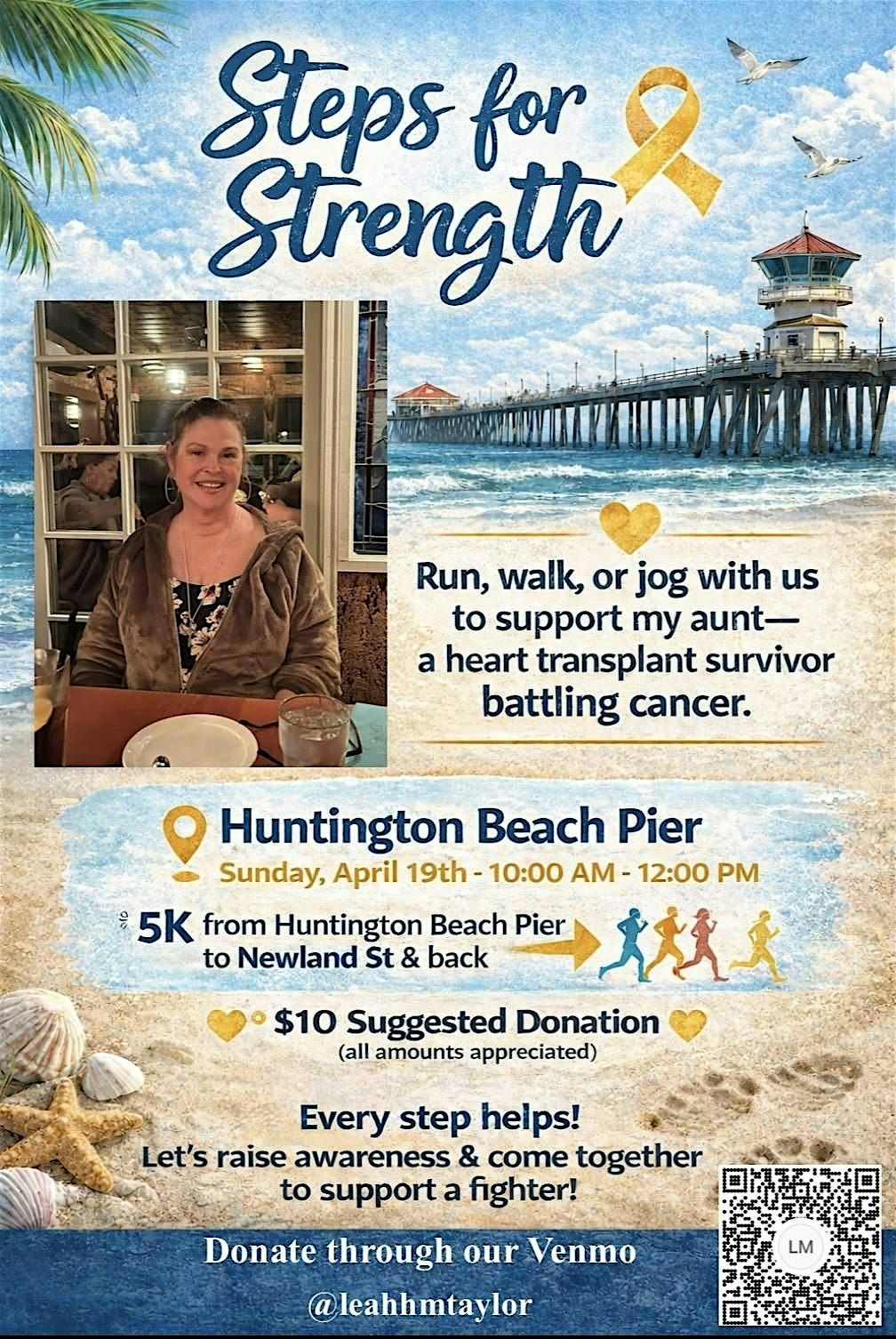 We will be starting on the boardwalk below the pier in Huntington Beach. This is an non-competitive event and is intended to show support for Desiree but also spread awareness about cancer. We will go to Newland Street and back!