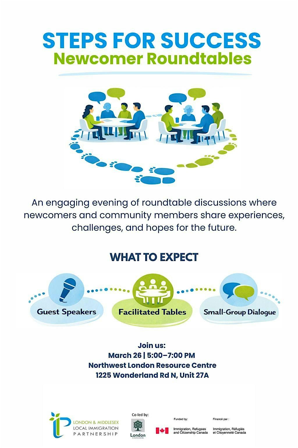 Steps for Success is an interactive roundtable event that brings together newcomers, community members, and local organizations to share experiences, insights, and practical pathways to success in our community.