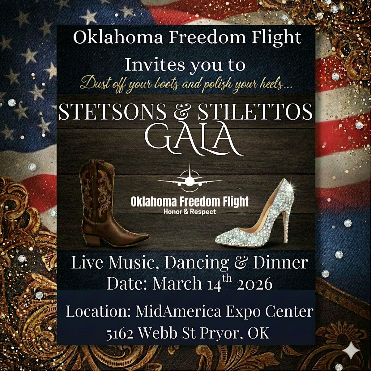 Oklahoma Freedom Flight Invites you to Join us as we kick off our 2026 Fundraising Season. This is a Formal Dinner/Dance Event.Agenda