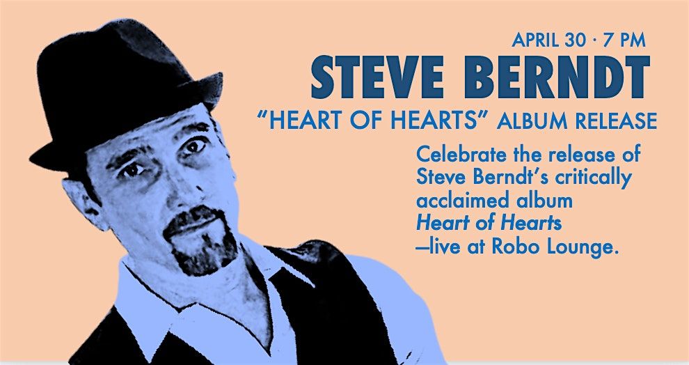 Join us for an unforgettable evening as Steve Berndt celebrates the release of his critically acclaimed album, “Heart Of Hearts”, live at Robo Lounge! The concert will be performed by a truly exceptional seven-piece band featuring the original session players who recorded the album. “Heart Of Hearts” has been very well received, reaching #3 on the Canadian college radio jazz chart for February 2026 and getting airplay, interviews and reviews on radio, podcasts and jazz publications across Canada, the U.S. and Europe.