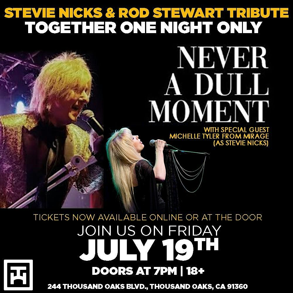 Get ready for an electrifying journey through the timeless hits of one of rock ‘n’ roll’s greatest legends with “Never a Dull Moment – A Tribute to Rod Stewart”! Together for one night only, Stevie Nicks & Rod Stewart, featuring special guest Michelle Tyler from Mirage (as Stevie Nicks).