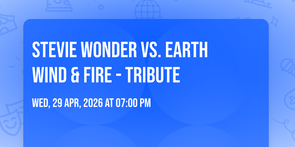 🌟 Journey into wonder at Stevie Wonder vs. Earth Wind & Fire - Tribute, where extraordinary experiences await around every corner! 🏛️ Set against the backdrop of Jimmy's Jazz & Blues Club in dynamic Portsmouth, NH, this event promises to exceed all expectations. 📅 Join us on April 29th, 2026 at 07:00 PM for a celebration that combines innovation, entertainment, and community spirit in perfect harmony. ✨ There will be an atmosphere where memories are made and stories come alive, ensuring every guest experiences something truly remarkable. 🎊 This is more than just an event; it's a journey into the extraordinary!http://maps.seatics.com/GeneralAdmissionEvent_2021-07-08_1017_10142023_121400_SVGC_tn.png