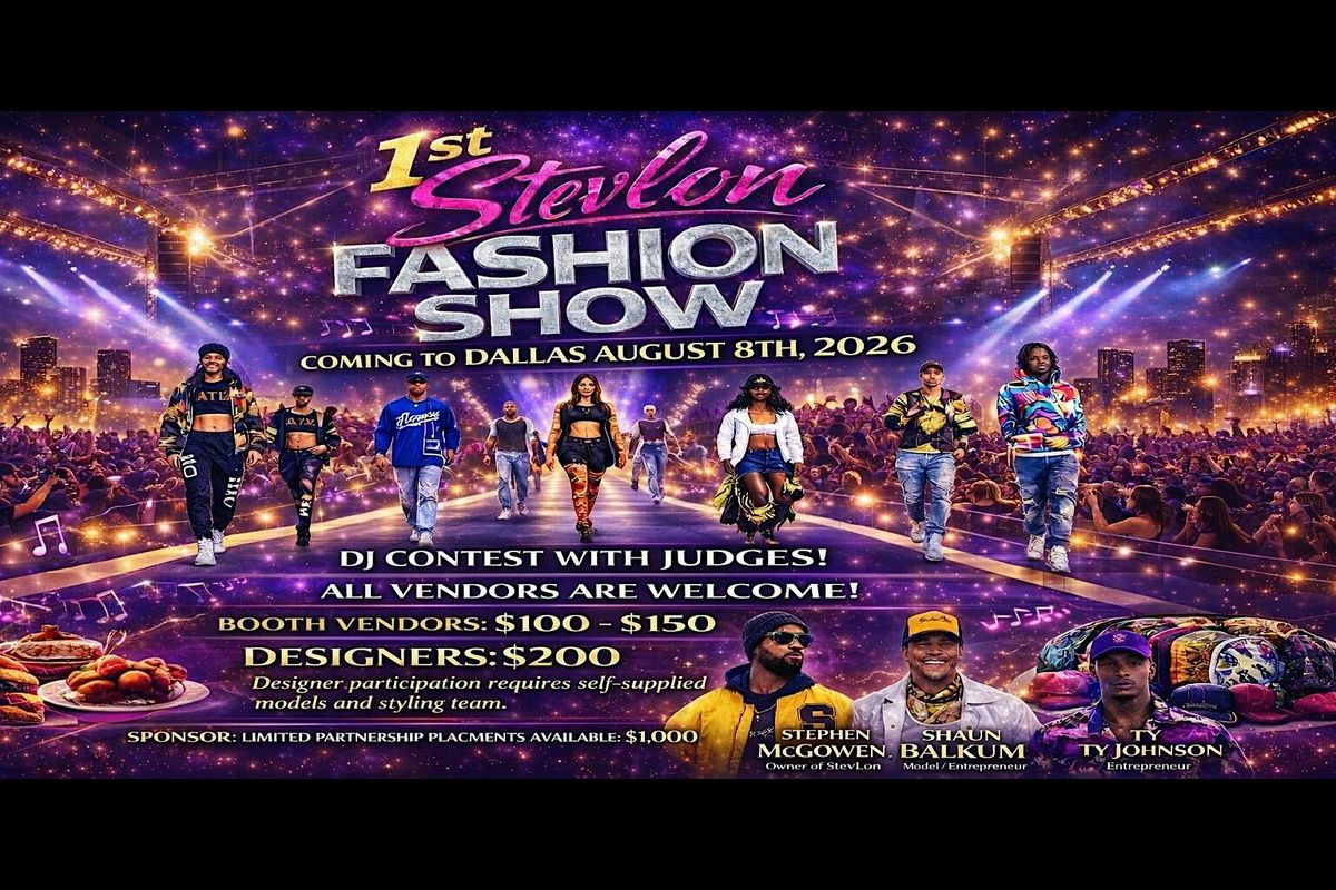 Dallas get ready, This StevLon Fashion Show and DJ Battle is one-of-a-kind where fashion and music collide. Mixing runway fashion, live DJ competition, and vendor's into one unforgettable nightlife & socializing experience. Watch designers showcase their collections, DJs battle for a championship title, and enjoy an exciting social atmosphere filled with music, style, and creativity. The night ends with celebration and afterparty as guests connect, shop with our amazing vendors, and enjoy the energy till 1:00 AM.
