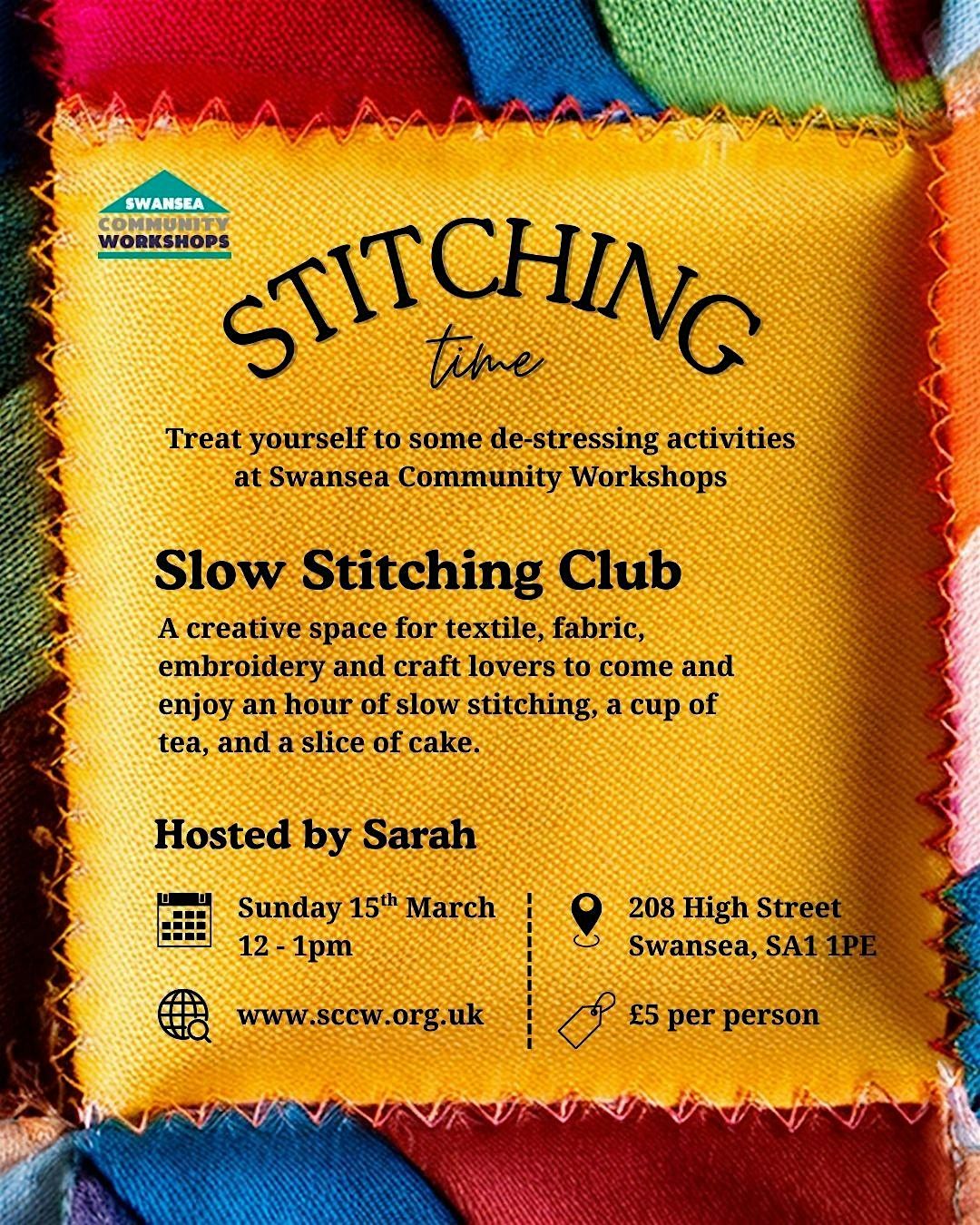 Enjoy the relaxation and creativity of slow stiching with Sarah. It's all about slowing down and relaxing and beinbg creative.