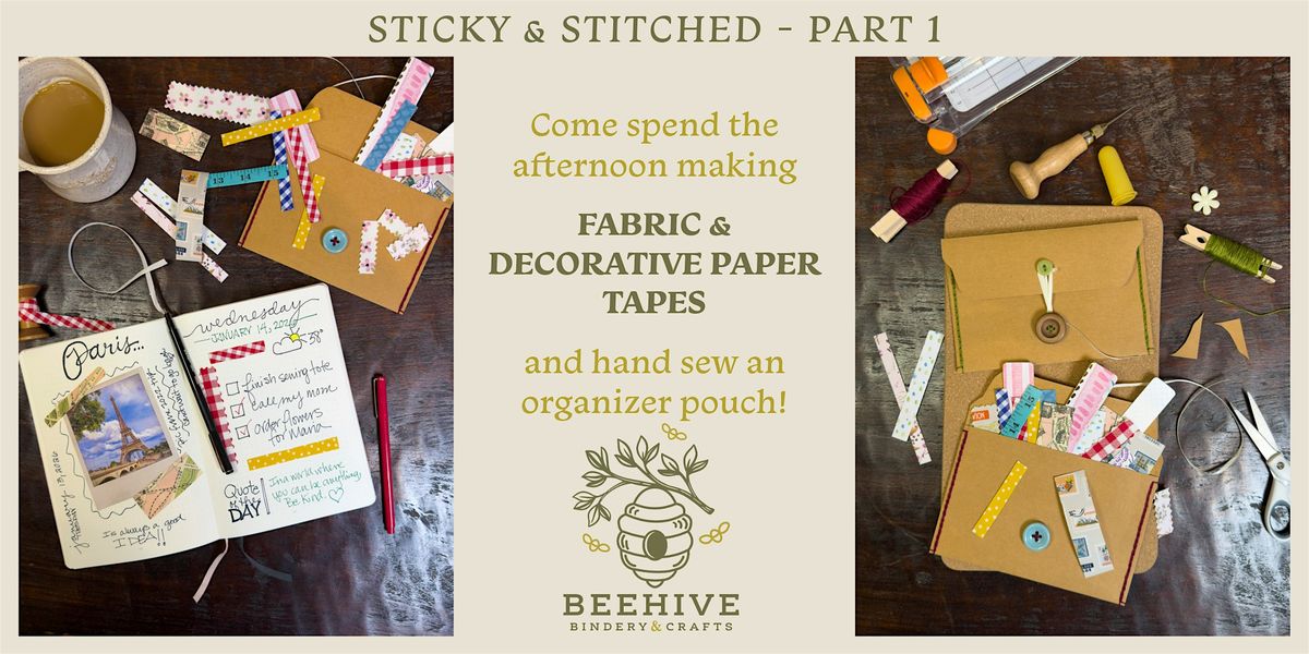 Join us for a cozy, relaxing and creative workshop to make your own Fabric & Decorative Paper Tapes AND a Hand-Sewn Storage Envelope! (NO SEWING EXPERIENCE NEEDED)
