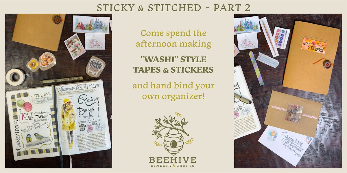 Join us for a cozy, stress-free, and FUN afternoon of making your own "Washi" style tapes, hand-made stickers AND a Hand-Bound Tape & Sticker Book (NO SEWING EXPERIENCE NEEDED)
