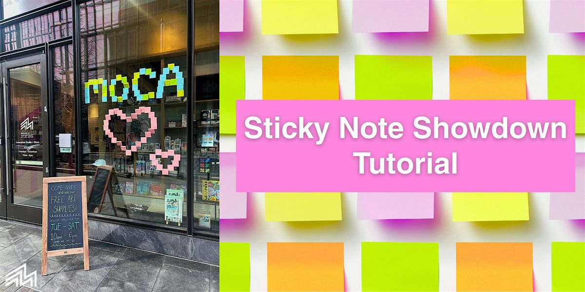 During this tutorial, all participants will receive a starting supply of Sticky Notes and access to a simple grided template to design their artwork. Particpants are welcome to drop in at any time to pick up supplies, ask any questions, and receive support from the MoCA team.