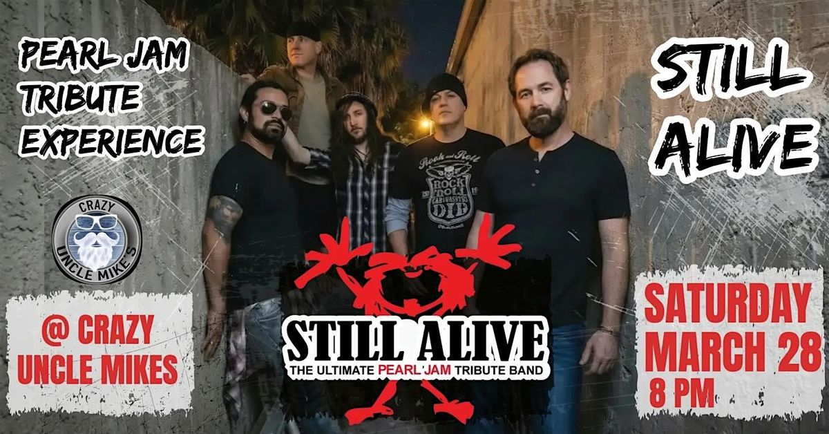 “STILL ALIVE" is the ultimate tribute to the iconic rock band Pearl Jam returns to Crazy Uncle Mike's . Performing an energetic tribute experience capturing the essence of the band with both the hit songs and the deep cuts of one of the most influential rock bands of the 90's.