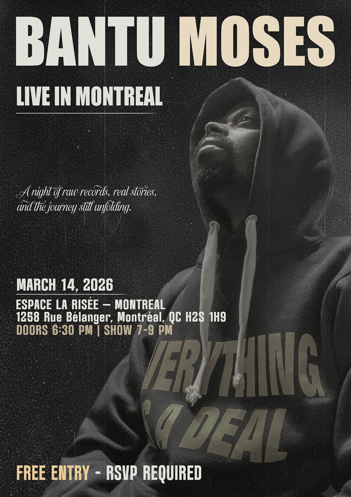 This is Bantu Moses’ first headline show.Music about the journey, the pressure, the faith, and the hunger.