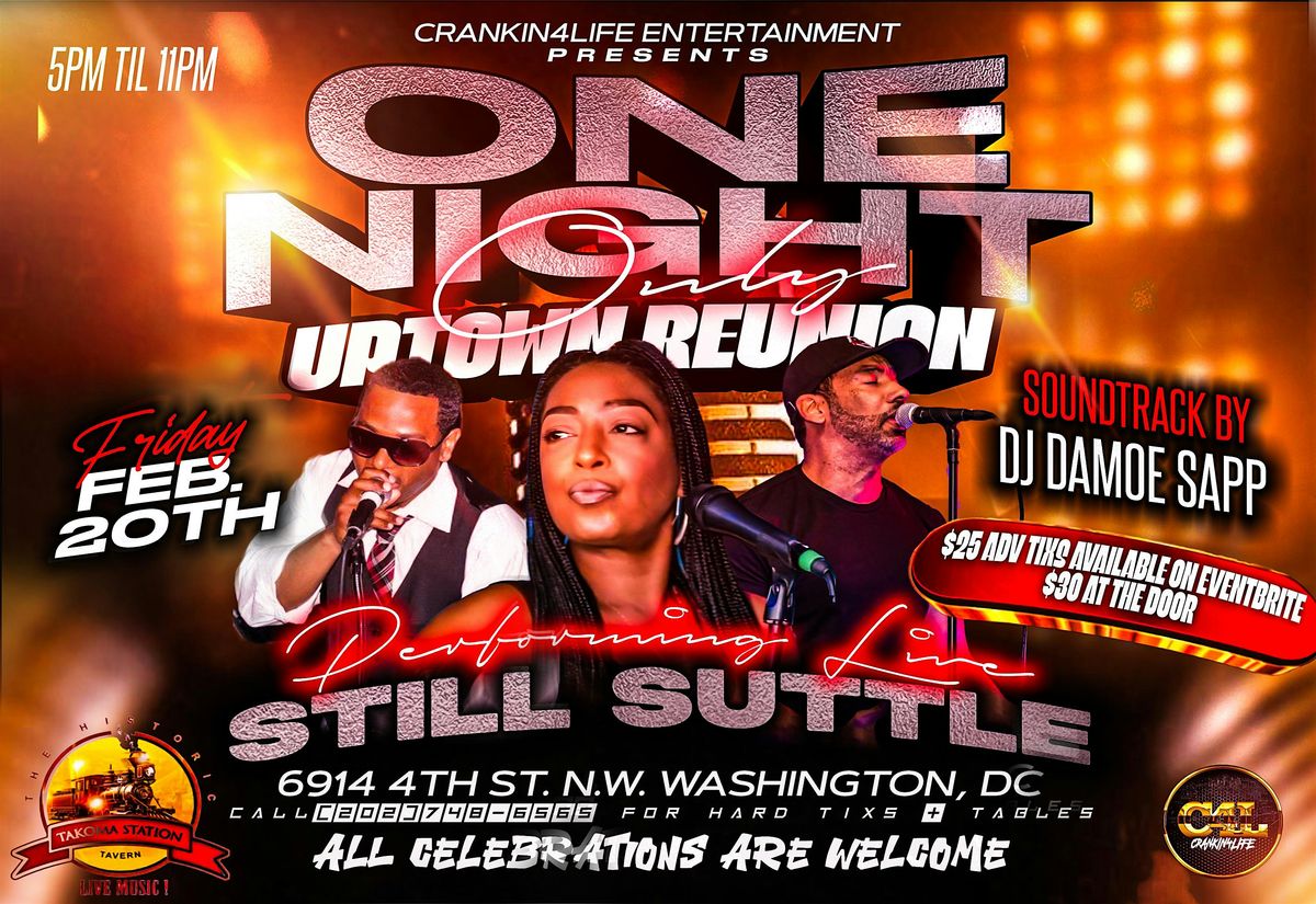 ONE NIGHT ONLY SOME FAMILIAR FAVORITES GET TOGETHER AT THEIR OLD STOMPING GROUNDS, TAKOMA STATION!! GET YOUR TIXS AND GET READY TO PARTY!!