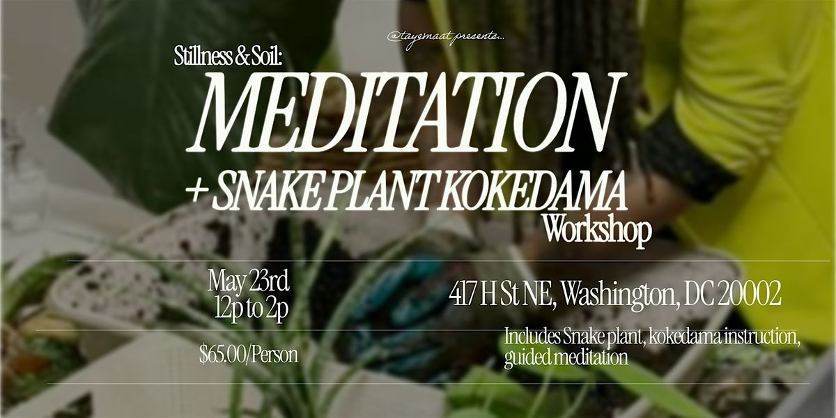 In a world that moves quickly, Stillness & Soil invites you to pause. Join wellness artist and plant creator Taye Maat, founder of Stillness & Kokedamas, for a calming afternoon of meditation and botanical creativity. This intimate workshop begins with a gentle guided meditation to help you arrive fully in the moment. From that grounded place, you will be guided step-by-step in creating your own snake plant kokedama — a beautiful Japanese-inspired moss ball plant that can sit or hang as living art in your home.