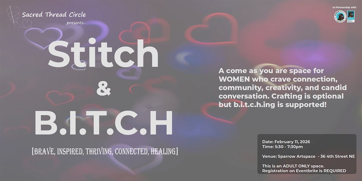 Hey ladies! Join us for Stitch & B.I.T.C.H, a cozy in-person gathering where you can create while you connect with other amazing women. Bring your favorite project or just show up for good vibes and great company. Let's laugh, share stories, and create together in this welcoming circle. Can’t wait to see you there! Donations welcome but not mandatory.
