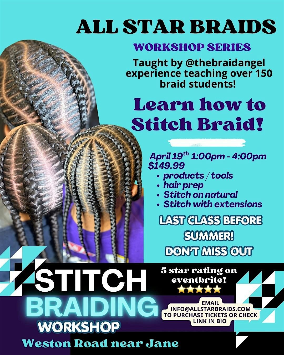 Learn stitch braids and knotless braids in this hands-on, interactive workshop. This class reveals the techniques & secrets used by the pros