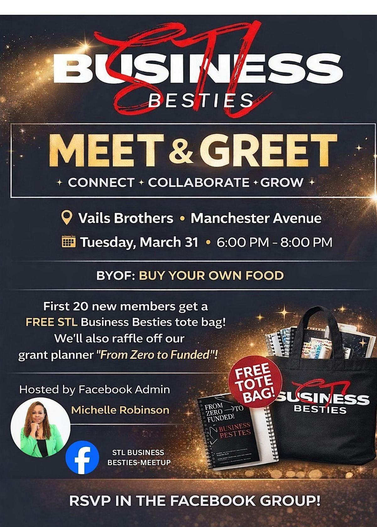 • The first 20 NEW members who arrive will receive a FREE STL Business Besties tote bag