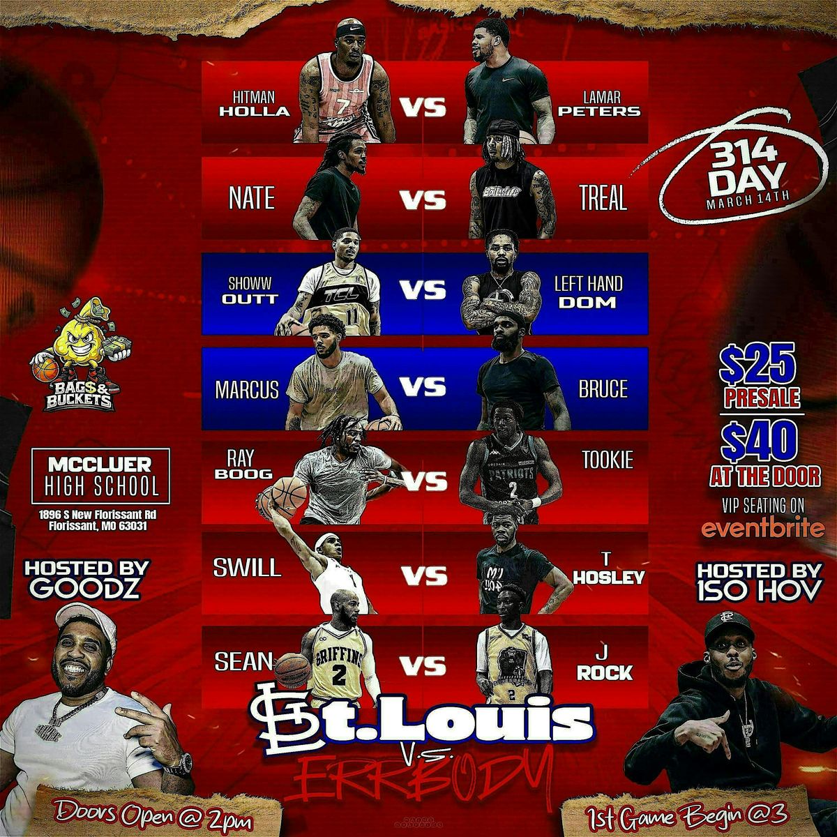Hitman Holla is ballin out for St. Louis' 314 DAY!!! Bringing the best ballerz from around the country to the Show Me State to compete against the best in The Lou in a 1v1 showdown!!! Pull up and see who will leave it all on the court and walk away with the crown!!!