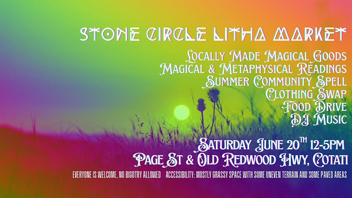 Stone Circle Litha Market will welcome Summer to Sonoma county with fantasy and fun! Litha is the summer solstice, longest day of the year, welcoming daylight hours to spend and fiery heat that ignites of dreams and passions.
