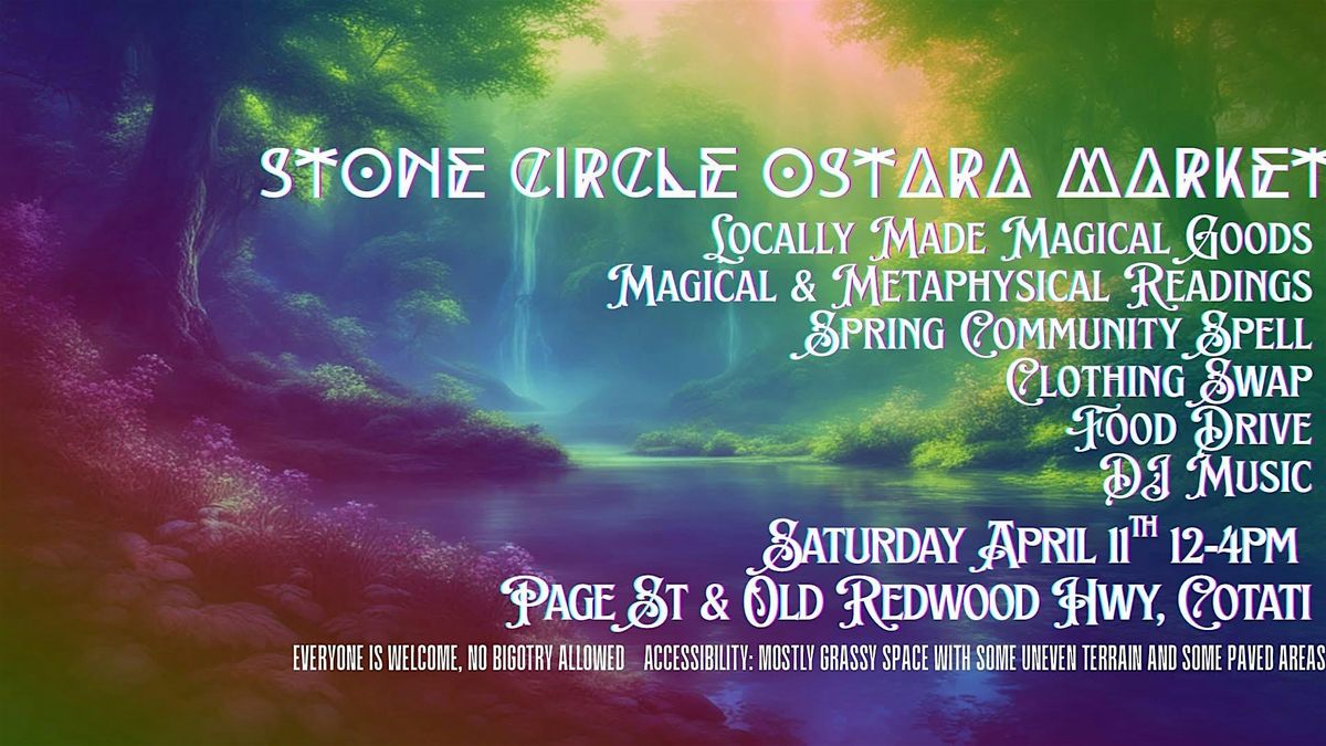Stone Circle Ostara Market will welcome Spring to Sonoma county with fantasy and fun! Ostara is the spring equinox, celebrating the return of longer days and the beginning of nature’s bloom.