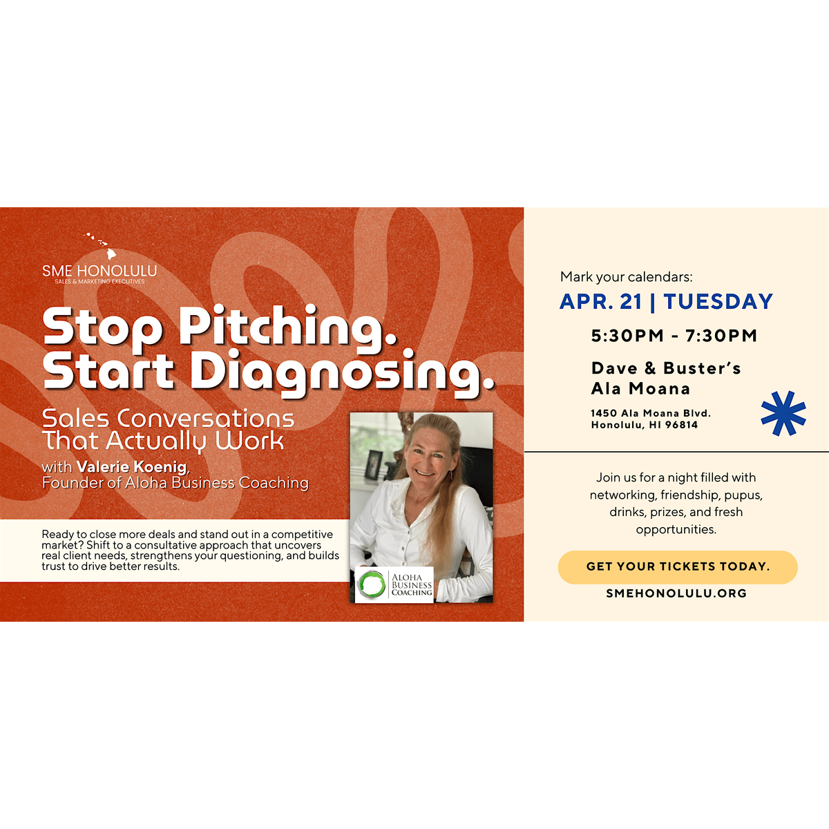 Valerie Koenig is a Hawaii-based business coach and consultant with over 20 years of experience helping owners and leadership teams improve performance, clarity, and results. As the founder of Aloha Business Coaching and Business Plans Hawaii, she has worked across industries—from construction and professional services to nonprofits—guiding leaders to replace guesswork and hustle with practical systems that drive growth. Known for her direct, no-nonsense approach and deep understanding of local business culture, Valerie specializes in turning complex challenges into simple, actionable frameworks. Her work in sales, strategy, and leadership development makes her uniquely qualified to teach professionals how to move beyond pitching and start diagnosing the real issues that drive buying decisions.
