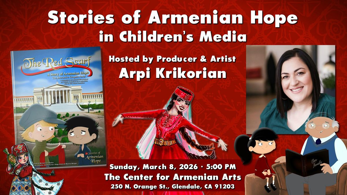 In preparation for Armenian Heritage Month, join us for Stories of Armenian Hope in Children’s Media, a powerful and timely presentation led by Producer & Artist Arpi Krikorian. This special event introduces Stories of Armenian Hope, an educational children’s media initiative designed to teach young learners lessons of resilience, courage, compassion, and humanity through animation, storytelling, and interactive media.